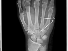 erfolgt eine Ruhigstellung in entsprechender Schiene bis zur Ausheilung