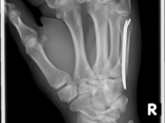 erfolgt eine Ruhigstellung in entsprechender Schiene bis zur Ausheilung